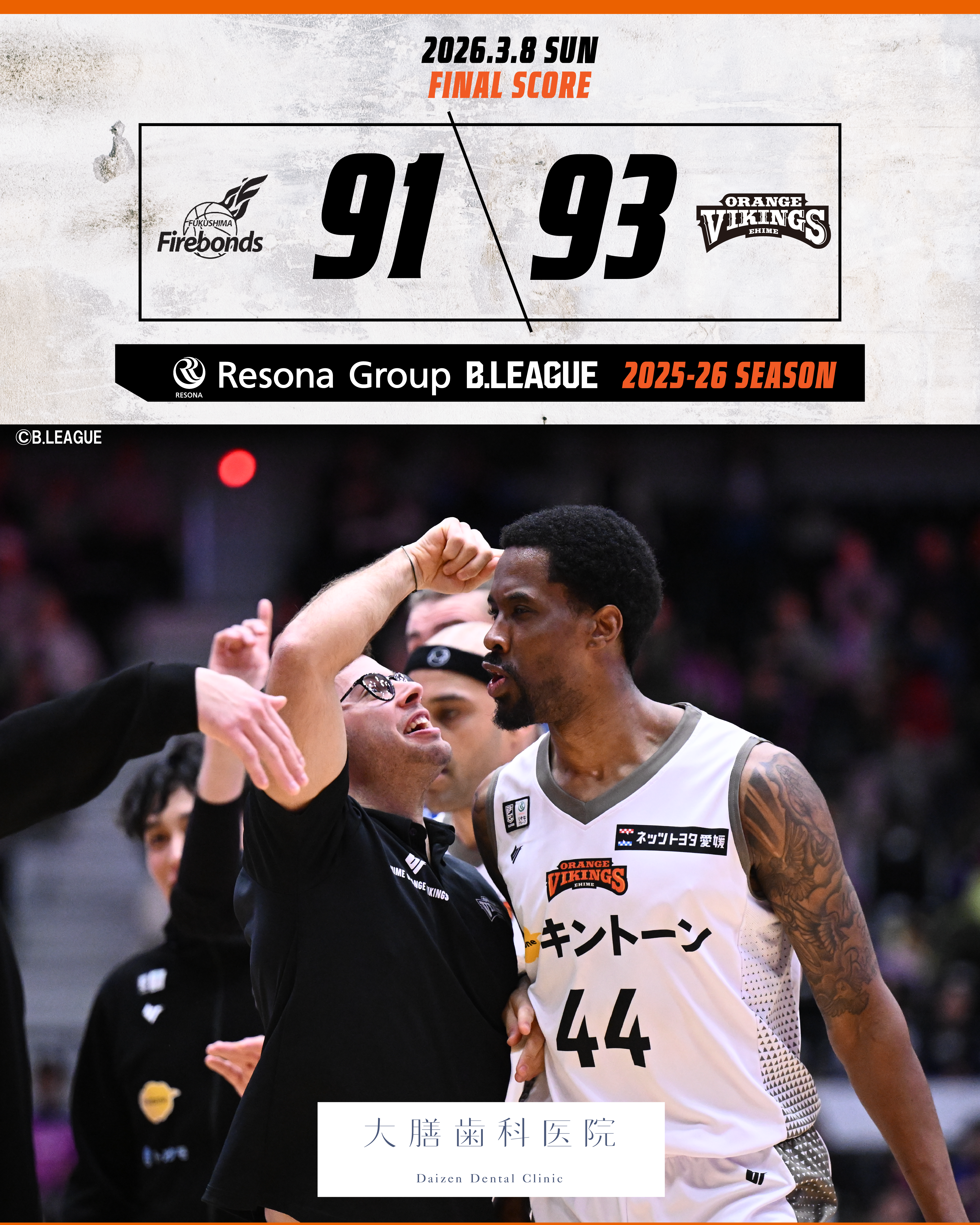 【試合結果】3/8(日) vs福島ファイヤーボンズ