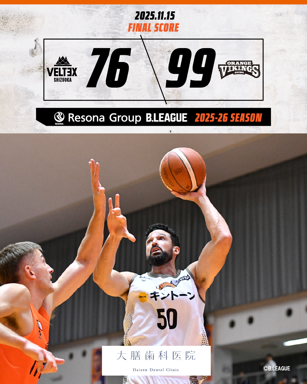 【試合結果】11/15(土) vsベルテックス静岡