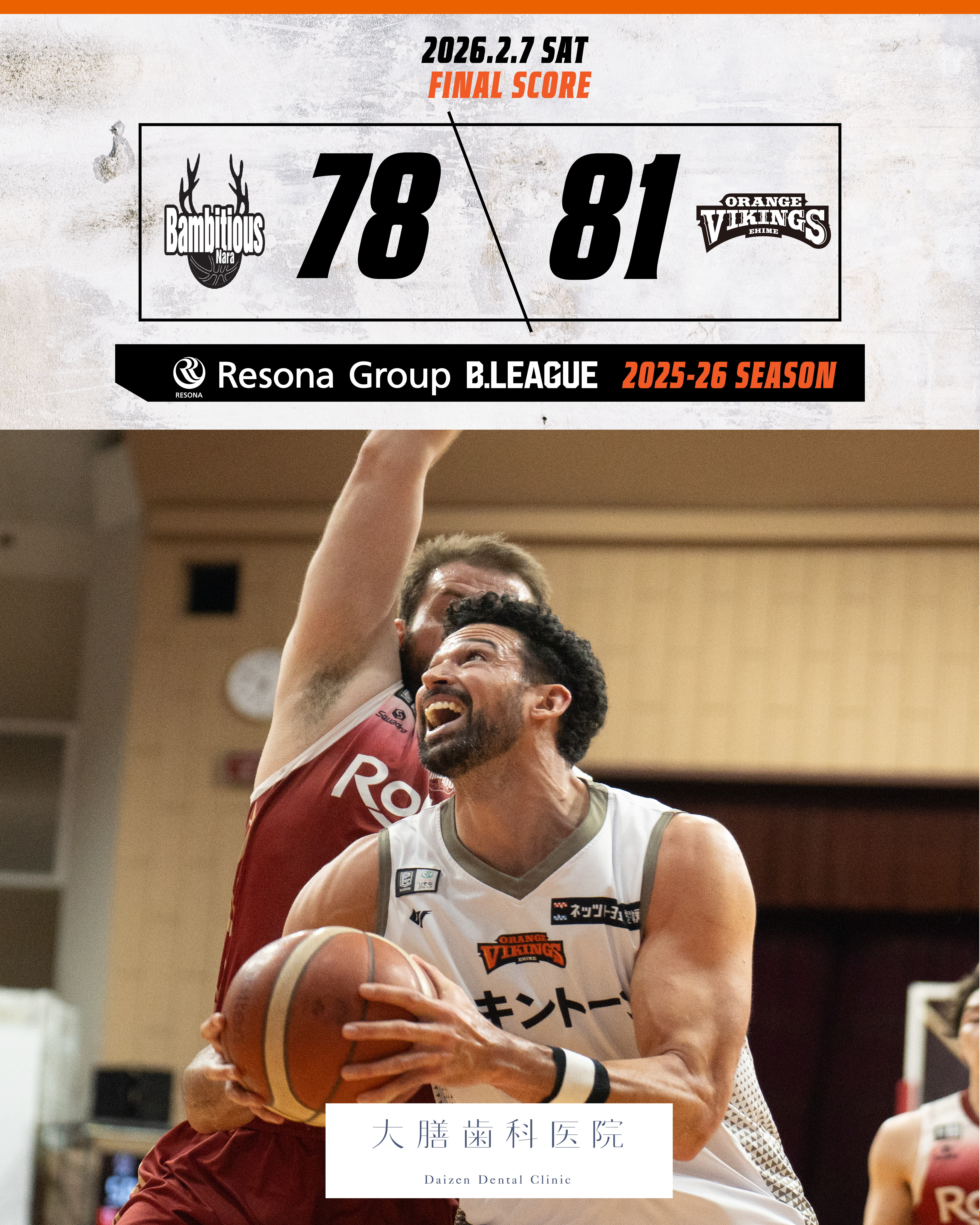 【試合結果】2/8(日) vsバンビシャス奈良
