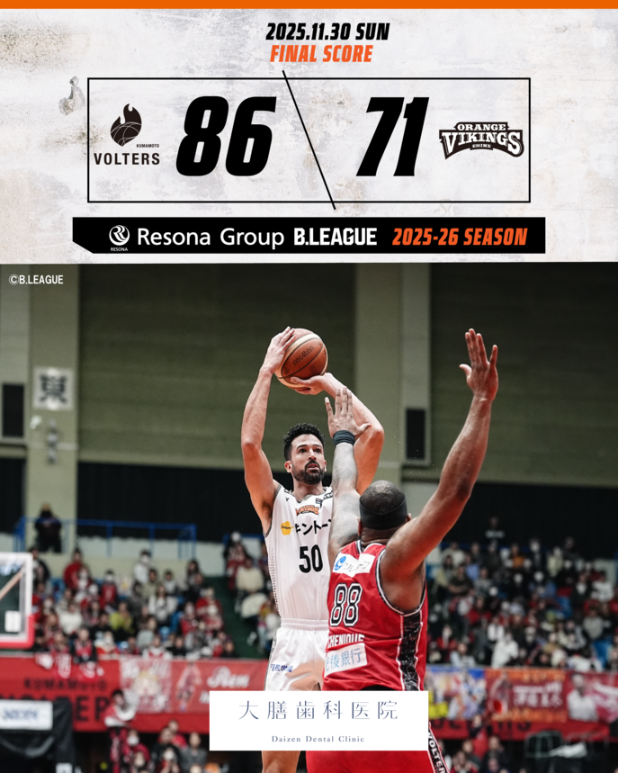 【試合結果】11/30(日) vs熊本ヴォルターズ