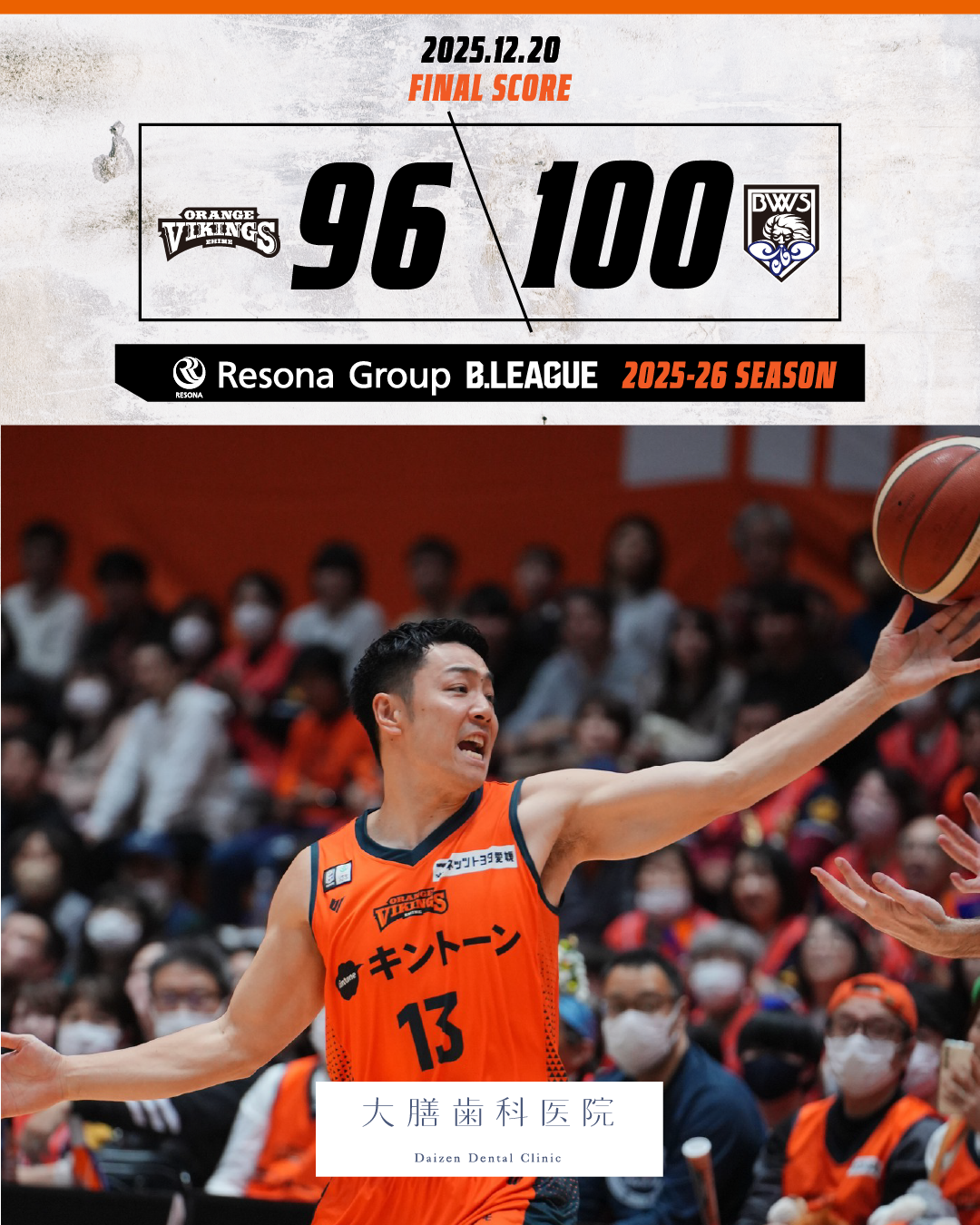 【試合結果】12/20(土) vs福井ブローウィンズ